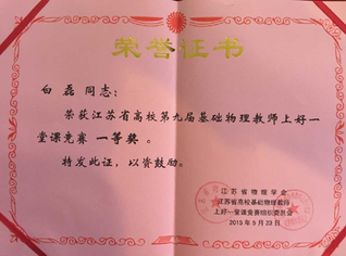 2015.5,我院基础部教师在江苏省高校物理教师讲课竞赛中荣获一等奖