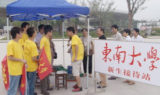 9月2日,东南大学晓庄校区条幅高挂,彩球飘舞,喜迎成贤学院2005级新同学的到来。
