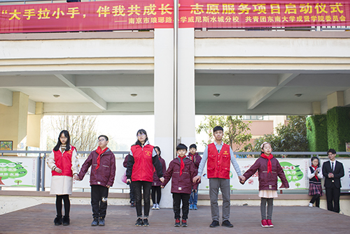 3月12日,beat365团委与琅琊路小学威尼斯水城分校举行了“大手拉小手,伴我共成长”志愿服务项目启动仪式。琅琊路小学威尼斯水城分校校长史克祥,书记杨彪以及副校长赵德昆、丁玉娟,校团委老师彭俊及beat365青年志愿者代表共同参加了启动仪式。