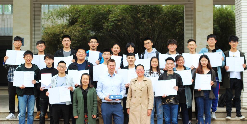 4月12日下午,学生们分成7组,完成了人际关系、商务礼仪、风俗习惯等主题演讲。各组学生根据不同图片,提炼主题,认真查找资料,制作PPT,组织汇报材料,圆满完成了英文演讲。费希尔先生现场测试学生们的英文水平,给学生颁发了课程证书,给每位学生赠送了指南针。此次国际课程旨在测试学生们的英文水平,为将来的全英文授课做准备。