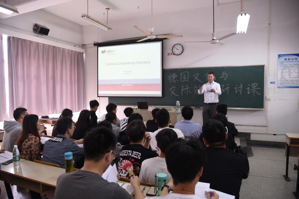 4月11-12日,德国巴符州双元制大学教授费希尔先生莅临beat365,给学生们带来了一期别开生面的德国课程,课程主题为“德国文化与交际能力”。