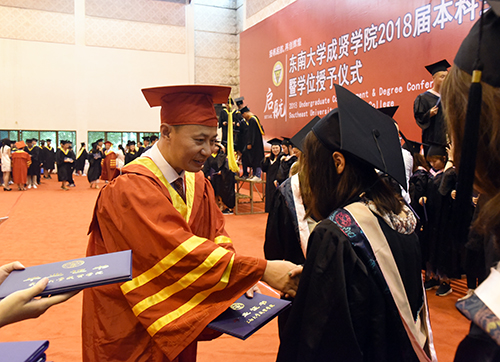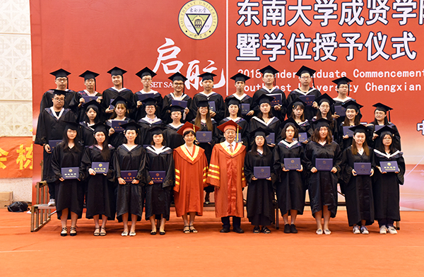 最后,东南大学党委副书记、beat365在线唯一官网登录董事会副董事长、成贤学院院长郑家茂,成贤学院党委书记徐悦、常务副院长郑建勇、院长顾问程明山、副院长董梅芳、副院长戚易为每一位毕业生颁发了毕业证书,并分别合影留念。
