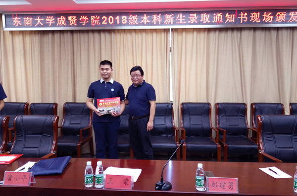 郑建勇常务副院长为录取新生颁发录取通知书