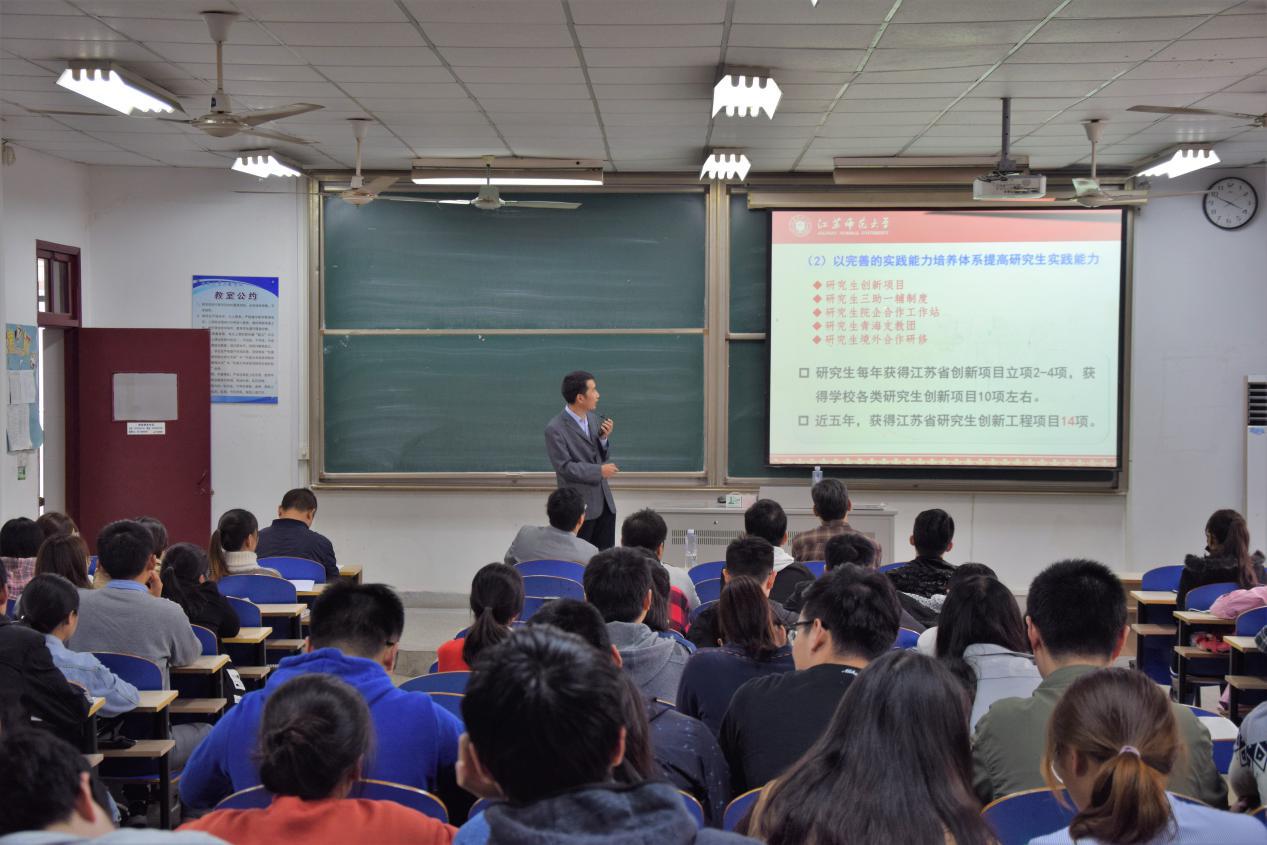 会后,江苏师范大学化学与材料科学学院硕士生导师姚昌盛教授为制药与化学工程学院2015级、2016级有考研意向的学生们进行了考研指导,并与学生们进行了热烈的互动交流。