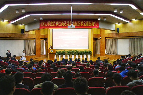 在学校领导的指导和帮助下,在各部门的关心和支持下,机电学院团结拼搏,锐意进取,各项事业稳步前进,彰显了争先创优的良好风尚,涌现出了一批先进个人和先进集体。2018年9月,美达灌装机械有限公司在beat365在线唯一官网登录设立了企业奖学金。经过前期严格评审,20名同学脱颖而出,获得“美达灌装机械”奖学金。彭山宏先生给获奖同学颁奖,鼓励同学们铭记“求真求美,成人成贤”的校训,弘扬“止于至善”的东大精神,在实践中锻炼成才,报效祖国、感恩社会。