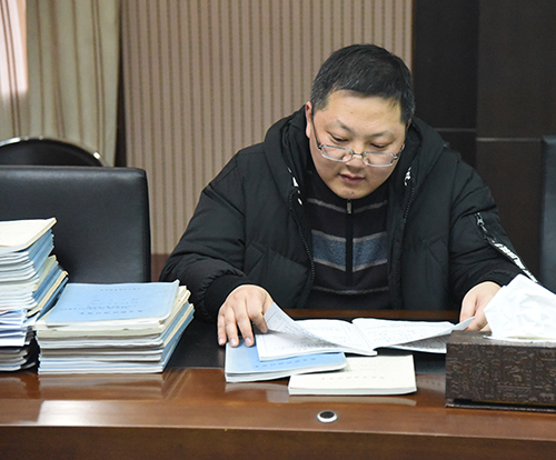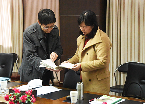 督查调研组认真查阅资料