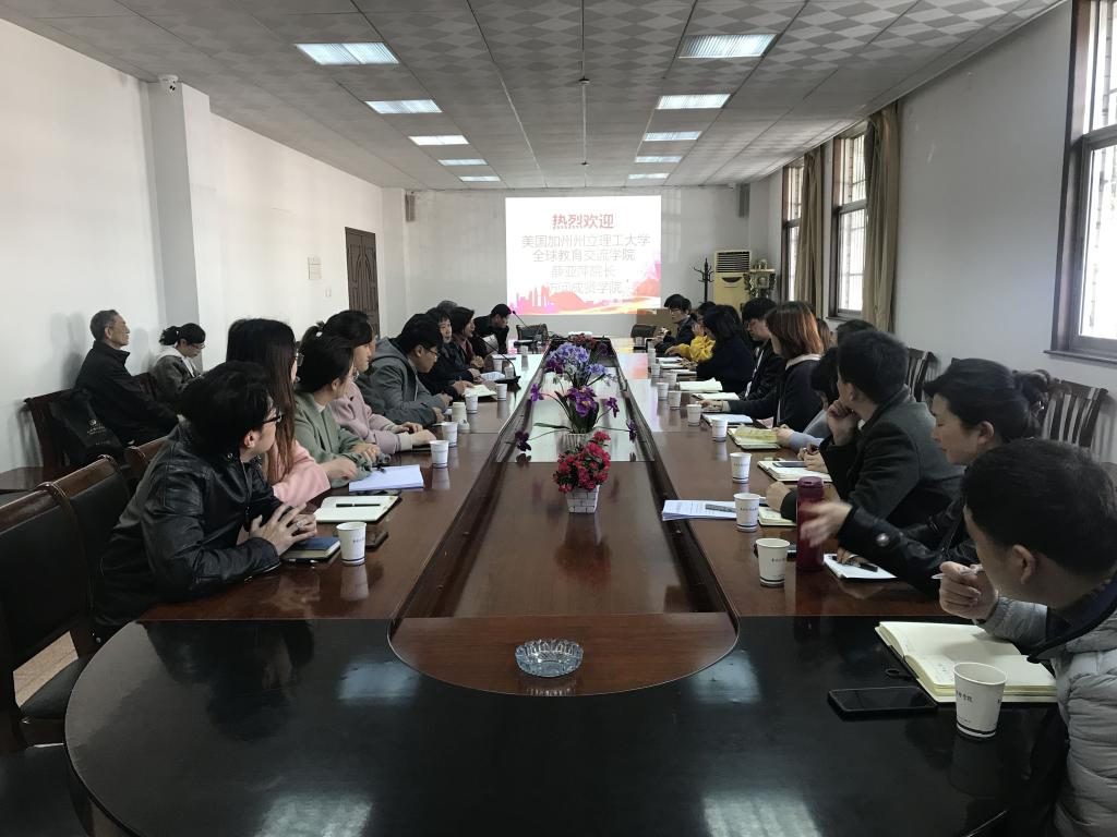 3月13日上午,美国加州州立理工大学(波莫纳)全球教育交流学院院长薛亚萍访问beat365。beat365在线唯一官网登录常务副院长许映秋、二级学院负责人、综合办主任以及辅导员代表参加了本次座谈交流会。