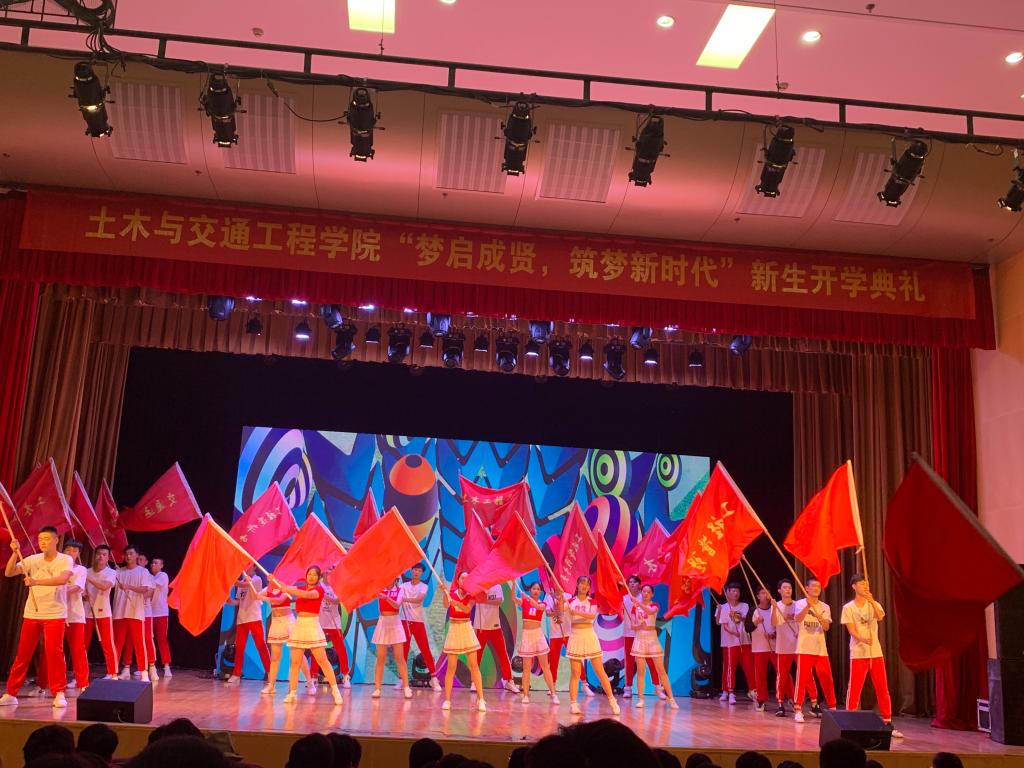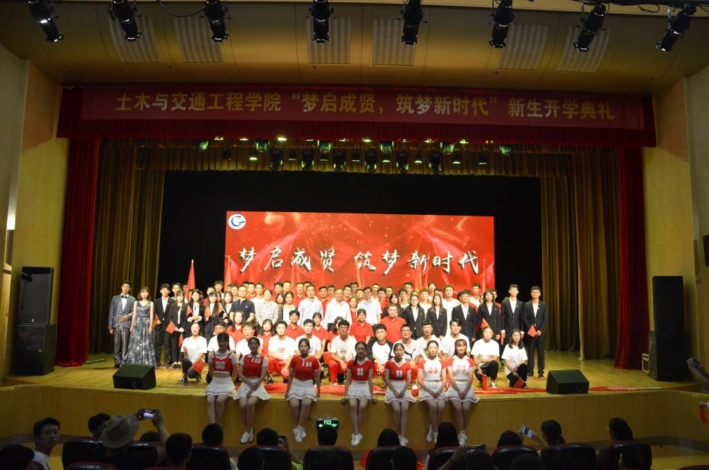 9月27日,beat365土木与交通工程学院在大学生活动中心313成功举办主题为“梦启成贤,筑梦新时代”2019级新生开学典礼。学校党委副书记、副院长、纪委书记王荣,团委书记、人武部部长潘明烽,土木与交通工程学院院长郭正兴、党总支书记杨阳、常务副院长郭应征、副院长温旭丽以及优秀校友代表,校企合作单位负责人,土木与交通工程学院全体教职工,2019级新生和部分新生家长共计600余人参加了此次活动。开学典礼由2019级辅导员田宇婷,2019级工程管理2班吴逸南主持。