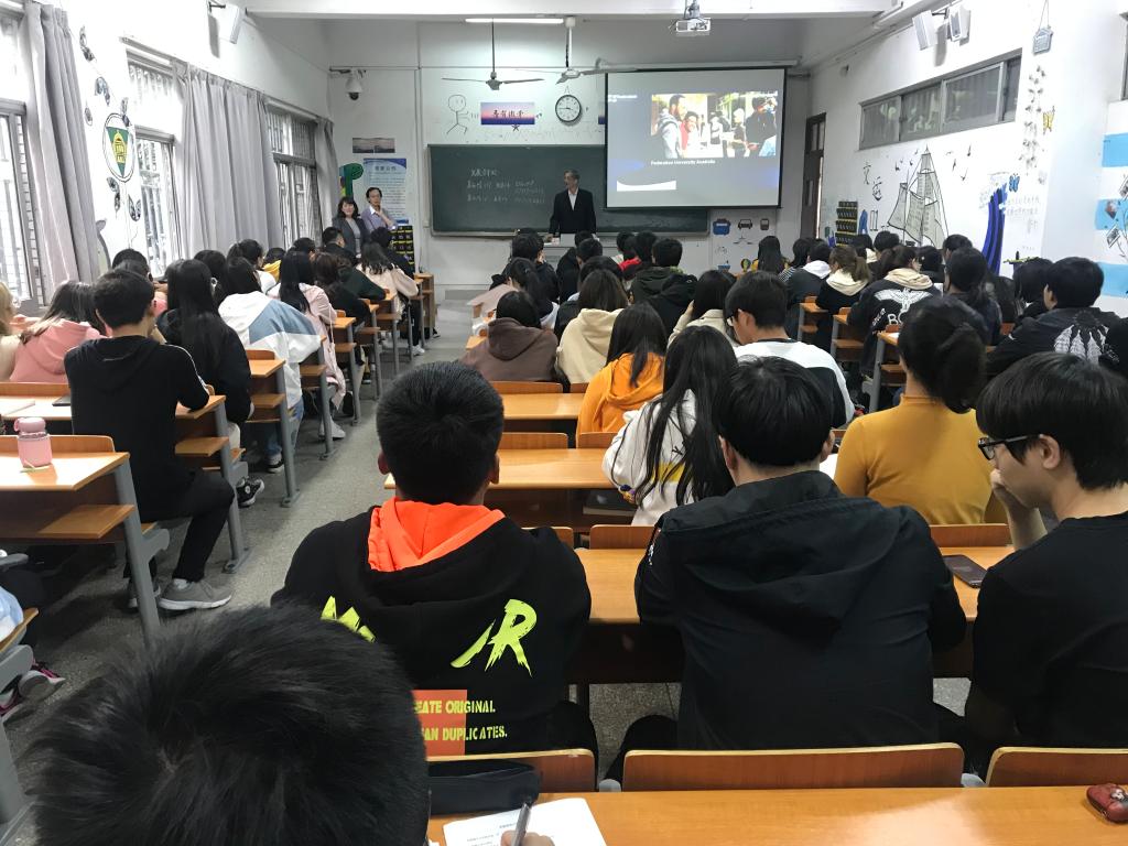 会议结束后,陆国军教授和Melissa Staley项目经理在金坛院103室为学生们做了学生交流合作项目专场宣讲会,100多名同学参加了此次宣讲会,宣讲会由发展合作处张务一老师主持。会上,Melissa Staley项目经理从学校概况、申请专业、排名情况、收费标准、项目优势、奖学金政策、入学模式等方面向学生们详细的讲解了关于澳大利亚联邦大学学生项目的具体情况。在场的学生反响热烈,踊跃提问,陆国军教授耐心细致地回答了同学们的问题。