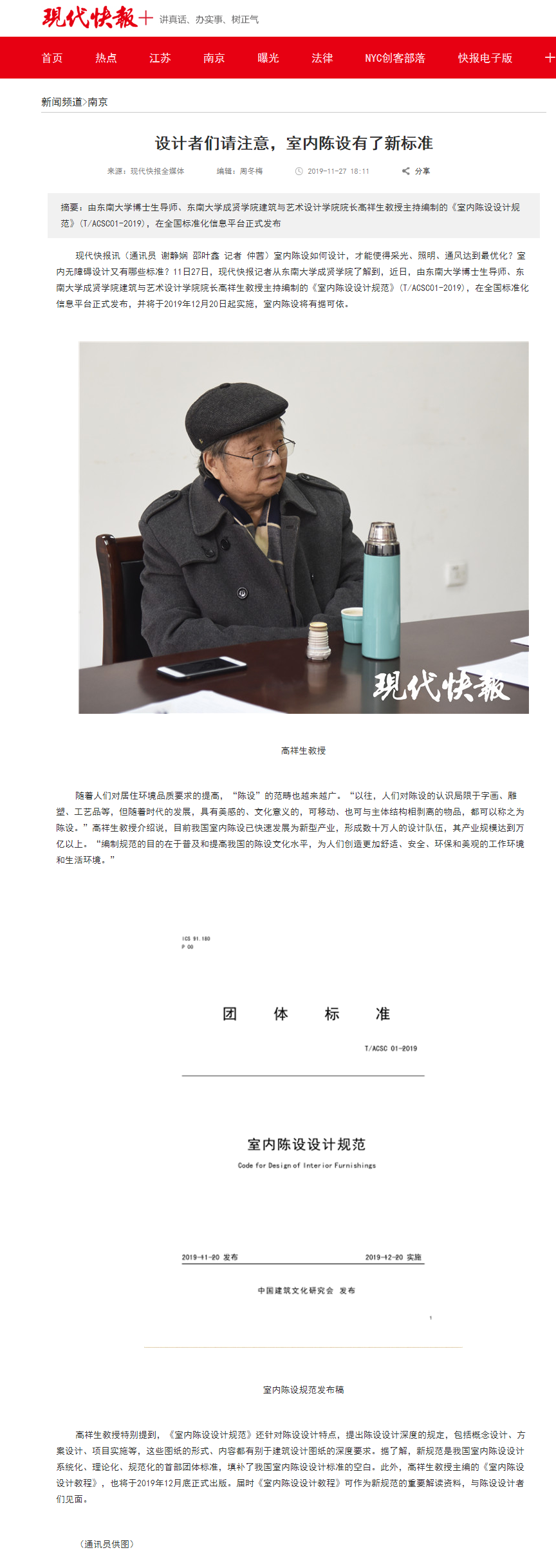 【现代快报】设计者们请注意,室内陈设有了新标准
