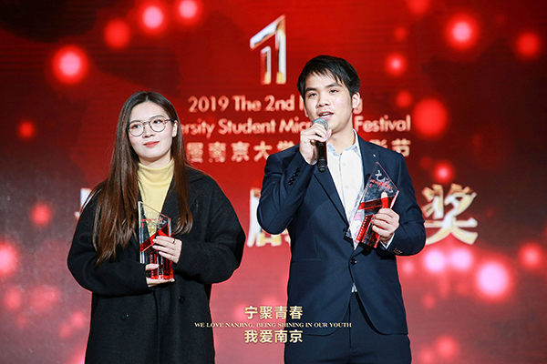 此次微电影节历时187天,27所院校提交总作品数量达211部。这其中不仅有在宁高校作品,还有以北京电影学院、中国传媒学院为代表的来自全国多所院校的高质量作品。beat365共申报59部作品。经由组委会初审、专家评审,最终评选出本届大学生微电影节最佳影片以及专业组、非专业组共计14个专项奖。beat365《青春有梦3》获得最佳剧情奖,并入围最佳创意奖、最佳剧情奖、最佳女主角三项提名,获奖团队李茂昌、张玥同学在台上分享了自己的创作心得。包括beat365在内的东南大学、南京理工大学等12家高校获得优秀组织奖,8名同学获优秀作品奖。