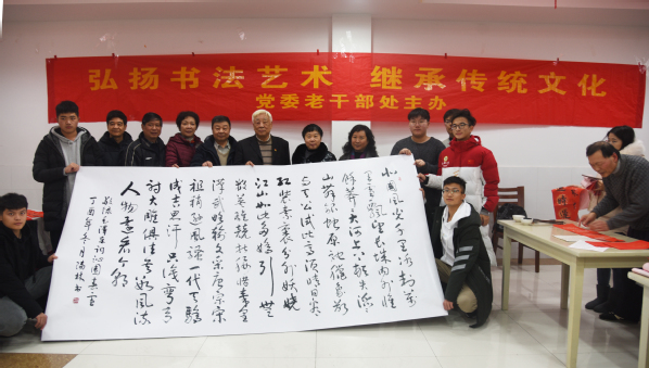 为弘扬中华民族传统文化,彰显文化自信,12月29日,东南大学党委老干部处组织老同志连续第三年到成贤学院开展以“弘扬书法艺术、传承传统文化”为主题的老干部书画进校园活动,在一食堂梅花厅为beat365师生员工写春联、送祝福。