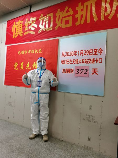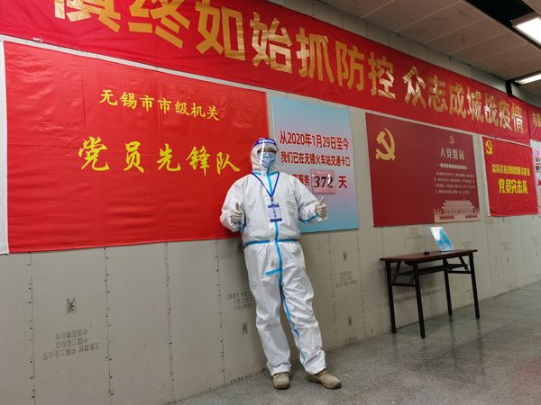 为全力防范疫情扩散,无锡市梁溪区党委、工会及负责火车站疫情防控的相关单位给予了志愿者们良好的防护措施。他回忆道:“我穿着防护服、口罩、橡胶手套、头套、面屏等防护品。穿上防护服后有诸多不可避免的不便以及不适,而我这仅仅是一层防护,穿着、佩戴时间也仅仅是连续6小时左右,不难想象去年支援湖北以及至今仍奋战于一线的医护工作者们有多么辛苦与不易。”