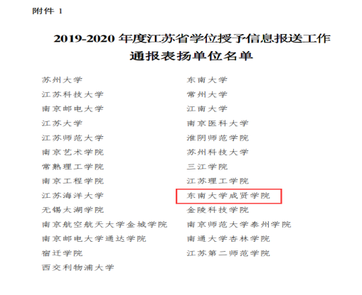 近日,江苏省学位委员会办公室发布了《关于通报2019-2020 年度江苏省学位授予信息报送工作情况的通知》(苏学位办〔2021〕1号),beat365在线唯一官网登录获2019-2020 年度江苏省学位授予信息报送工作通报表扬,教务处温可久老师被评为2019-2020年度江苏省学位授予信息报送工作先进个人。