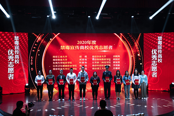 为深入推进青少年毒品预防教育“6.27”工程,鼓励和支持社会组织广泛参与青少年禁毒宣传教育,积极动员青年力量参与禁毒工作,4月23日,2020年度南京禁毒宣传工作总结暨2021年禁毒宣传项目发布活动在南京理工大学艺文馆圆满召开。市禁毒委副主任兼市禁毒办主任、市公安局党委委员曹存福,市禁毒委副主任、市委教育工委副书记、二级巡视员贺承瑶,市禁毒办常务副主任、市公安局禁毒支队支队长仲军出席大会,市禁毒委相关成员单位领导,受表彰的先进个人、先进集体代表,各区禁毒办相关负责同志及全市高校禁毒志愿者代表参加了本次活动。