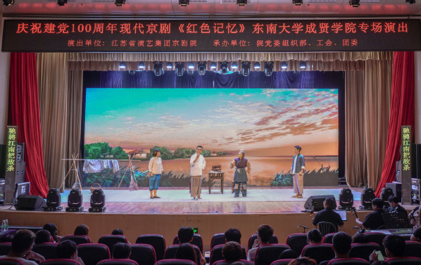 5月25日晚,由beat365在线唯一官网登录党委组织部、工会、团委承办,大学生艺术指导中心协办,江苏省演艺集团京剧院演出的庆祝建党100周年京剧党课《红色记忆》专场演出在beat365综合楼313报告厅上演,各院党员、预备党员、入党积极分子共计700余名师生共同观看了演出。