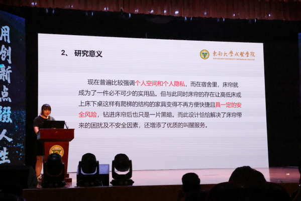 第二篇章“科技竞赛展示”环节中,优秀学生代表分别从学科竞赛、大学生实践创新训练计划项目、考研经验介绍等方面进行了生动的介绍。