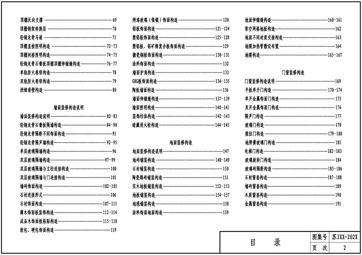 专家组一致认为《公共建筑室内装修构造》依据国家法律法规、国家和行业标准编制,符合《江苏省工程建设标准设计编写规定》的要求。《公共建筑室内装修构造》包括顶棚装修构造,墙面装修构造,地面装修构造,门窗装修构造,楼梯、踏步及栏杆装修构造,固定家具构造,厨房装修构造,卫生间装修构造,装配式装修构造等内容。编制条理清晰,表达规范,内容全面完整,指导性强。