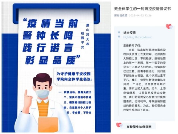 疫情防控,与爱同行。本轮疫情以来,各院(部)在学校的统一部署下,奋力迎战,积极行动,将防疫与育人相结合,多措并举推进各项工作,汇聚温暖力量,共同保障师生安全。