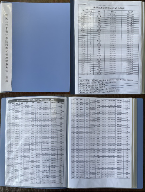 优化网格化管理,明确管理边界。学院注重疫情防控工作流程,结合实际优化网格化管理并制定《建筑与艺术设计学院网格化管理联系方式一览表》、《建筑与艺术设计学院疫情防控期间突发应急事件处理实施方案》和《建筑与艺术设计学院AB角工作制度》,层层细化到以宿舍为单位划分429个网格,明确管理边界,坚决做到政策落实零误差,数据信息零漏报。