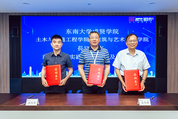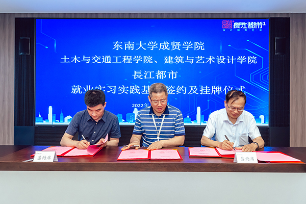 人力资源部经理刘友存则向与会领导、老师介绍了从2013年起入职长江都市的19位成贤校友的职业发展情况,他们在结构设计、建筑设计、室内设计、环境设计等多个岗位,展现了成贤学子扎实的专业功底和良好的综合素质,为企业的快速发展贡献了自己的青春智慧。科研技术管理部经理韦佳以《坚持“双创”战略驱动持续发展——长江都市设计创优与科技创新》为主题,介绍了长江都市从传统的设计企业向工程设计与科技创新相集合的科技企业的转型之路,介绍了企业近年来在绿色建筑与装配式建筑、办公建筑的创新应用、科研课题与技术研究等方面所取得的成果。随后土木与交通工程学院院长郭正兴、建筑与艺术设计学院党总支副书记邵叶鑫,分别代表两个学院与南京长江都市建筑设计股份有限公司总经理董文俊签订了《就业实习实践基地协议书》并挂牌“beat365在线唯一官网登录就业实习实践基地”。