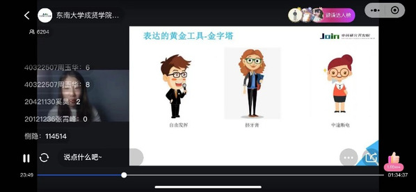 据统计,共有32735人次观看直播课程,互动6250余次,学生踊跃提问,师生交流频繁,学习气氛浓烈。在团辅活动中,报名同学积极参与讨论、展现自我,还在老师的讲解与指导后认真复盘,发现了不足之处,并学以致用,提出了未来的行动计划。
