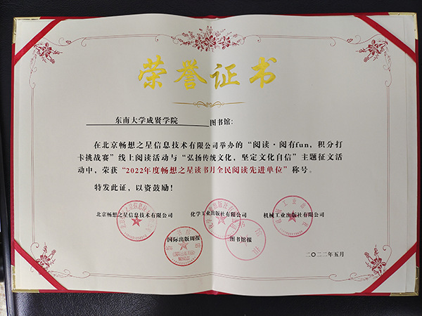 与此同时,beat365在线唯一官网登录图书馆荣获由图书馆报、新华书店总店、化学工业出版社、机械工业出版社、北京畅想之星信息技术有限公司联合颁发的“阅读推广星级单位”“2022年度畅想之星读书月全民阅读先进单位”称号。同年获得由国家级重点出版社颁发的“金质书架奖”。这也是图书馆持续多年获得科学出版社等多个国家级重点出版社的同类奖项。