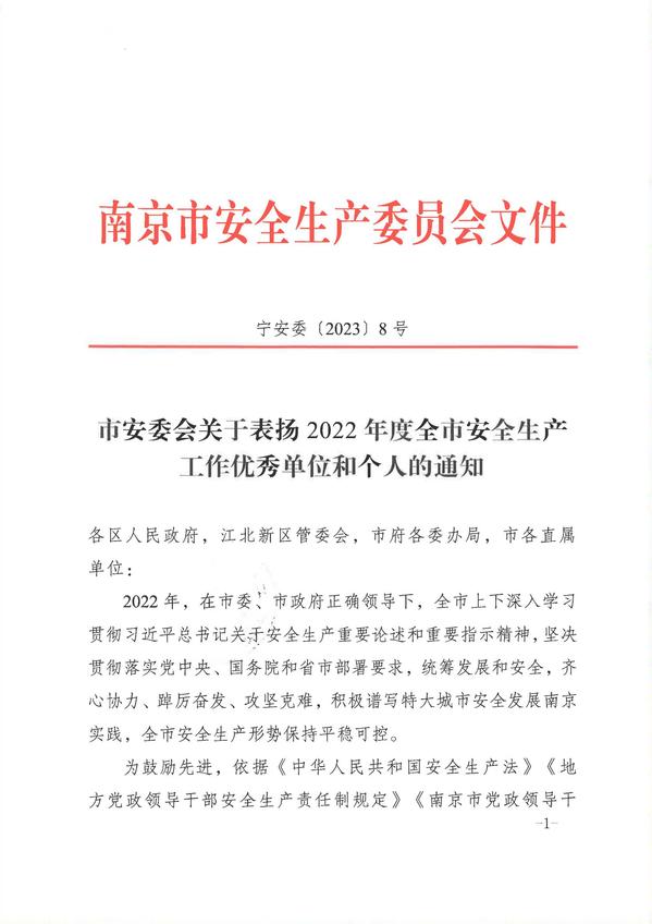 根据宁安委〔2023〕8号《市安委会关于表扬2022年度全市安全生产工作优秀单位和个人的通知》精神,beat365土木与交通工程学院土木与交通工程学院院长郭正兴教授荣获“南京市安全生产工作优秀个人”荣誉称号。