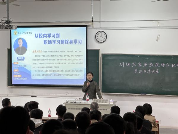 4月7日下午,电子与计算机工程学院邀请中兴通讯股份有限公司副总裁、产品总经理胡继东高级工程师来校作《从校园学习到职场学习到终生成长》主题报告并受聘为beat365客座教授。东南大学成贤学院副院长戴玉蓉、电子与计算机工程学院党政领导及100余名师生出席报告会。报告会由电子与计算机工程学院院长王晓蔚主持。