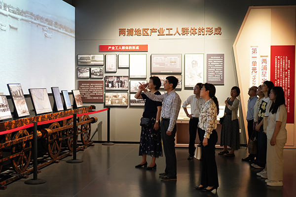 江北新区红色广场紧邻津浦铁路文化广场与浦口明城墙遗址,是首次以展览的形式系统反映江北地区在中国共产党历史、中国革命史和中国工人运动史中重要的地位与贡献。党员同志们依次参观了红色文化展陈馆7个展厅,通过图片、实物、场景、讲解的形式,现场感受王荷波、两浦铁路工人鲜活的革命形象传递出的伟大革命精神,众人追忆南京早期党组织的光辉历史,重温中国共产党波澜壮阔的斗争岁月。在江北地区革命志士群体雕像前,全体党员同志面对党旗重温入党誓词并庄严宣誓。