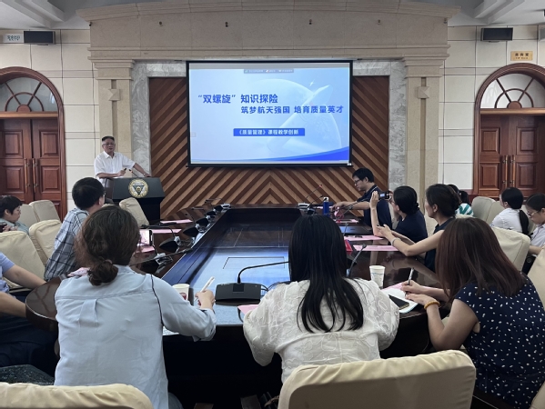 会议第二个议程是请两名国赛一等奖选手做教学案例分享。方志耕教授分享了《质量管理》课程教学创新:“双螺旋”知识探险——筑梦航天强国,培育质量英才,从课程简介、学情分析、教学理念、创新举措、成效推广和教创总结五个方面做了汇报;苏铓副教授分享了自己的教学案例:“打通全栈网络,编写硬核程序——内化全栈、对接实战、迎接挑战”,分析了课程概况、理念目标、课程创新、成效与推广。随后,参训教师们与两位嘉宾进行互动问答,最后培训会围绕“我在教学中需要改变什么”这一问题进行深入交流。