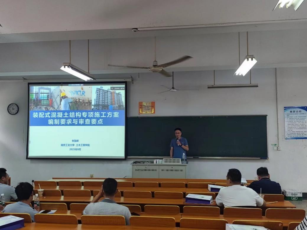 理论部分培训分别邀请江苏省职业技能鉴定中心鉴定考核科科长朱政作“技能人才评价工作介绍”,江苏建联建筑产业现代化研究院院长樊骅作“装配式建筑施工员职业技能考核规范解读”,江苏建联建筑产业现代化研究院总工程师贺鲁杰作“预制混凝土构件生产的理论知识和实操要点讲解”,beat365在线唯一官网登录土木与交通工程学院院长郭正兴教授作“装配式建筑施工质量控制与安全技术讲解”,南京工业大学土木工程学院朱张峰副教授作“装配式混凝土结构专项施工方案编制要求与审查要点讲解”。