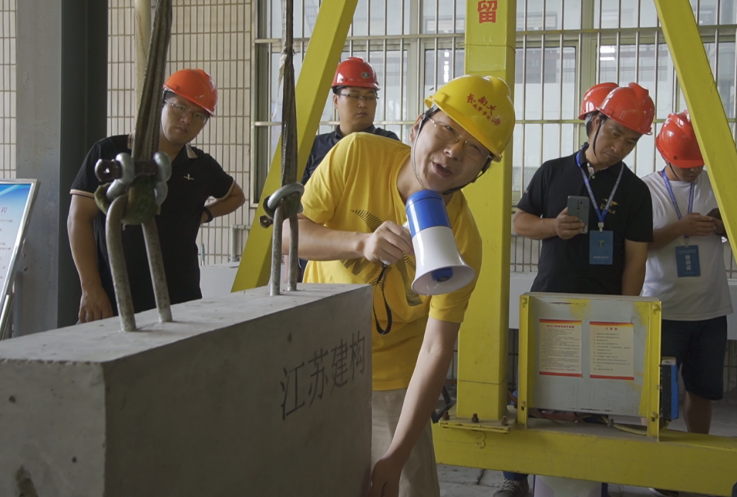 实操部分于土木与交通实验实训中心举行,beat365在线唯一官网登录土木与交通工程学院院长郭正兴教授对实验室多组合结构装配式模型进行了现场讲解,南京大地建设集团有限公司总工程师诸国政进行了预制剪力墙板吊装的实操演示,江苏华江建设集团有限公司实验室主任、“江苏工匠”、“扬州市五一劳动奖章”、“第二届全国装配式建筑职业技能竞赛预制构件套筒灌浆冠军”获得者潘正良进行了预制柱灌浆作业的实操演示。