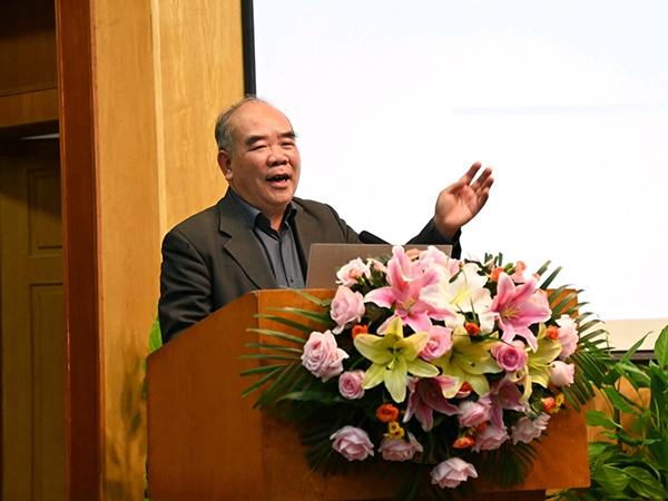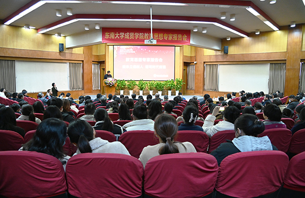 冯建明主任以《未来的大学与大学的未来——兼及东大与成贤》为题做报告,就未来大学的多元模式、数智化、国际化及全人化等方面作了鞭辟入里的分析。他指出,我们必须重塑教学内容、教学方法和培养重心,顺势而变。随后冯主任结合东南大学的历史方位、愿景目标、发展战略,对东南大学的发展思路和重点任务作出富有远见的阐述。最后冯主任描绘了学校未来发展的美好蓝图并提出希望和鼓励。