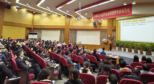 常务副院长黄学良教授首先致辞,他代表全体师生员工对两位专家的莅临指导表示热烈的欢迎和诚挚感谢。他表示,回望beat365在线唯一官网登录20周年发展历程,学校办学规模不断壮大,在人才培养、学科专业建设、科学研究、社会服务等多方面都取得了显著的成绩,为区域经济社会发展做出了积极贡献。他希望学校能以转型发展机遇期为契机,以本次教育思想专家报告会为起点,进一步统一思想,更新观念,坚定信心,开好新局。