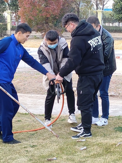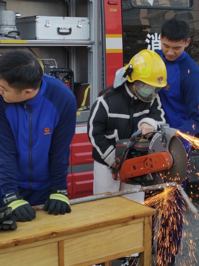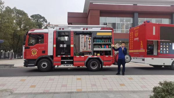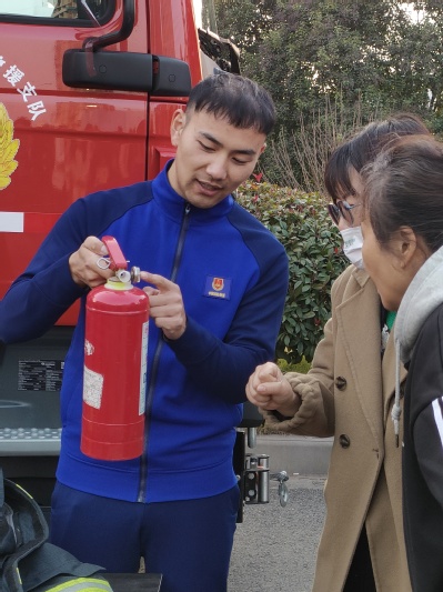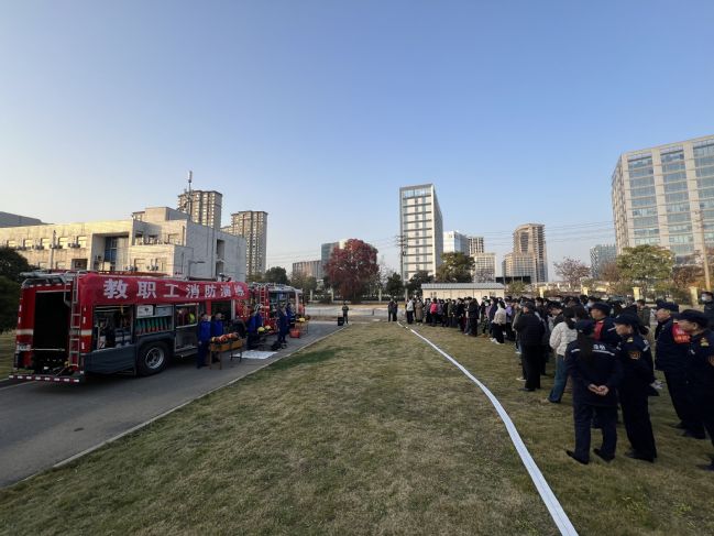 南京消防救援支队高新大队孟凯详细介绍了家庭、办公室、实验室、公共场所等不同场景下火情发生的起因及过程,普及了相关预防知识及进行初期处置的方法,阐述了预防为主、防消结合的理念。演练现场设置了穿戴装备、救援装备、灭火实操三个功能体验区,现场教工在消防队员的引导下至各体验区进行了实际操作。通过亲手操作液压及切割等救援装备,穿戴消防战斗服及空呼,使用干粉灭火器灭火的多重亲身体验,增强了教工的代入感与实操感,提高了正确使用消防器材、处置初期火情及逃生自救的能力。