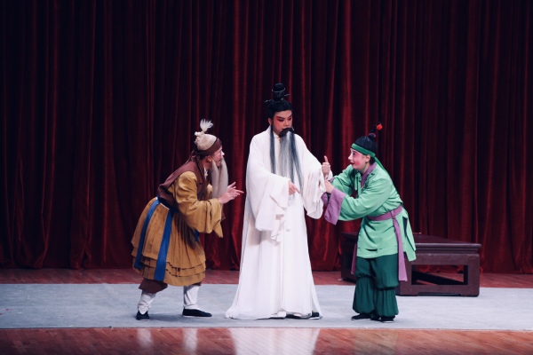 江苏省演艺集团昆剧院是从事昆曲艺术研究、创作、表演的专业团体。本次表演基于清代传奇《蝴蝶梦》,以《说亲》《回话》两折为核心,打破了传统的封建思想,赋予了田氏新的思想,由“庄周试妻”转而变为“妻试庄周”,最终让庄周认识到自己的错误,夫妻两人消除隔膜,恩爱如初。轻喜剧的艺术形式让学生忍俊不禁,但也从反面印证了夫妻之道以信任为重。同时,剧目以南昆古朴典雅、清新细腻的风格为基准,尊重艺术规律及昆曲传统程式,最大程度保留文本曲唱和表演艺术精华,让学生真切体会到传统昆曲艺术。五个人,一台戏,看似极简,却使得整剧活色生香,满台生辉。