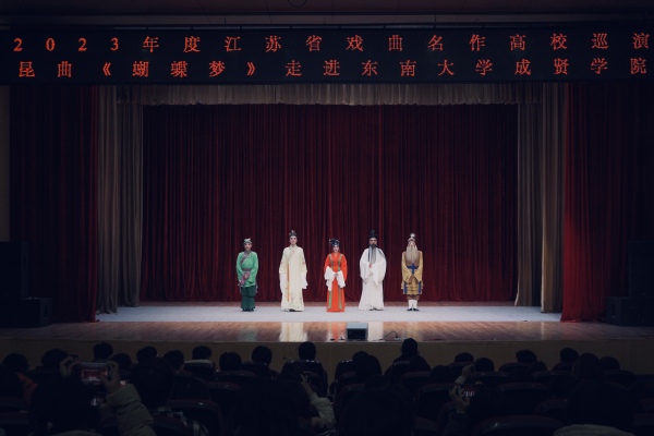 12月6日晚,由省委宣传部、省教育厅主办,校团委大学生艺术指导中心承办,江苏省演艺集团昆剧院创排演出的2023年度江苏戏曲名作高校巡演昆剧《蝴蝶梦》在beat365综合楼报告厅举办。全校师生700余人共同观看了此次演出。