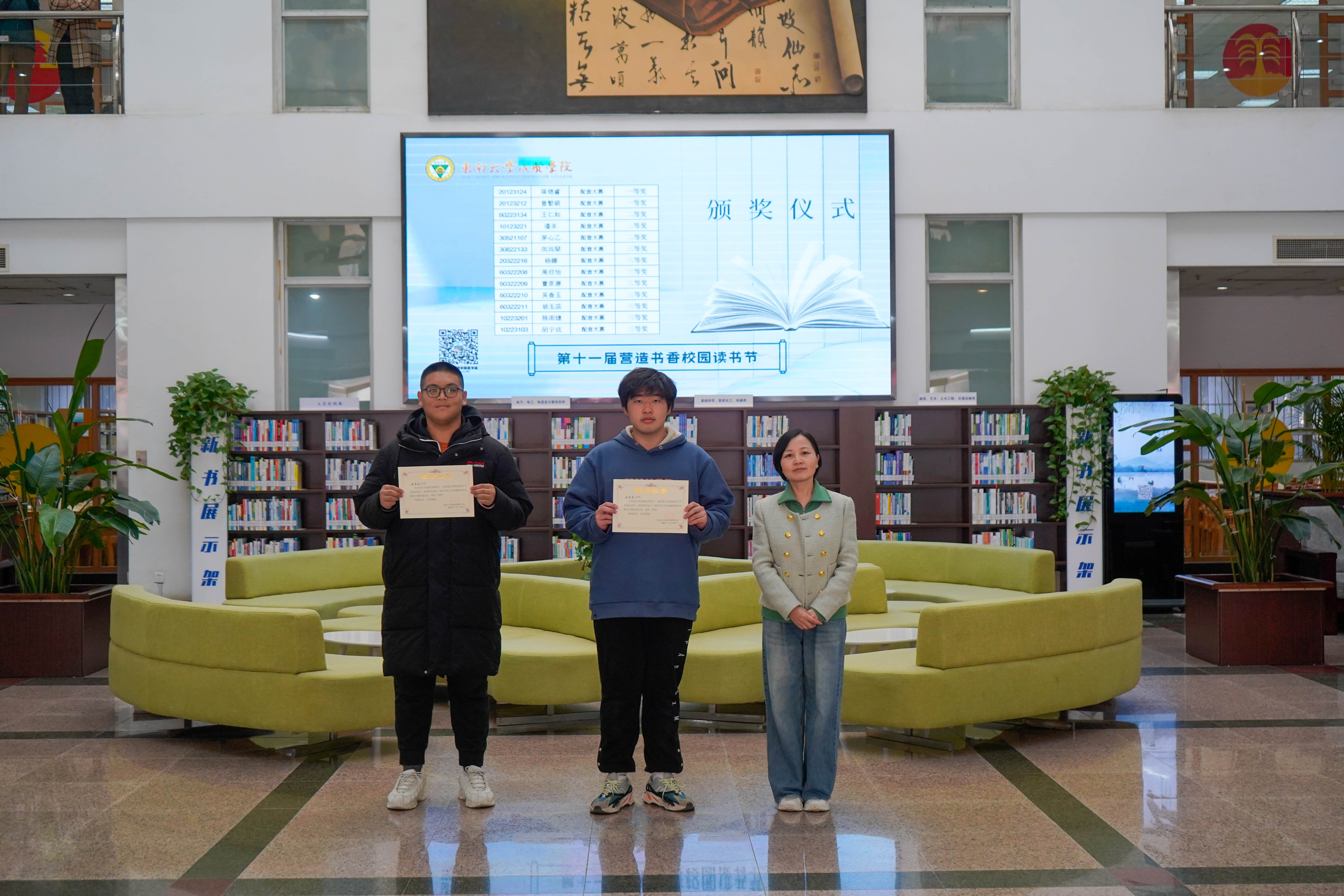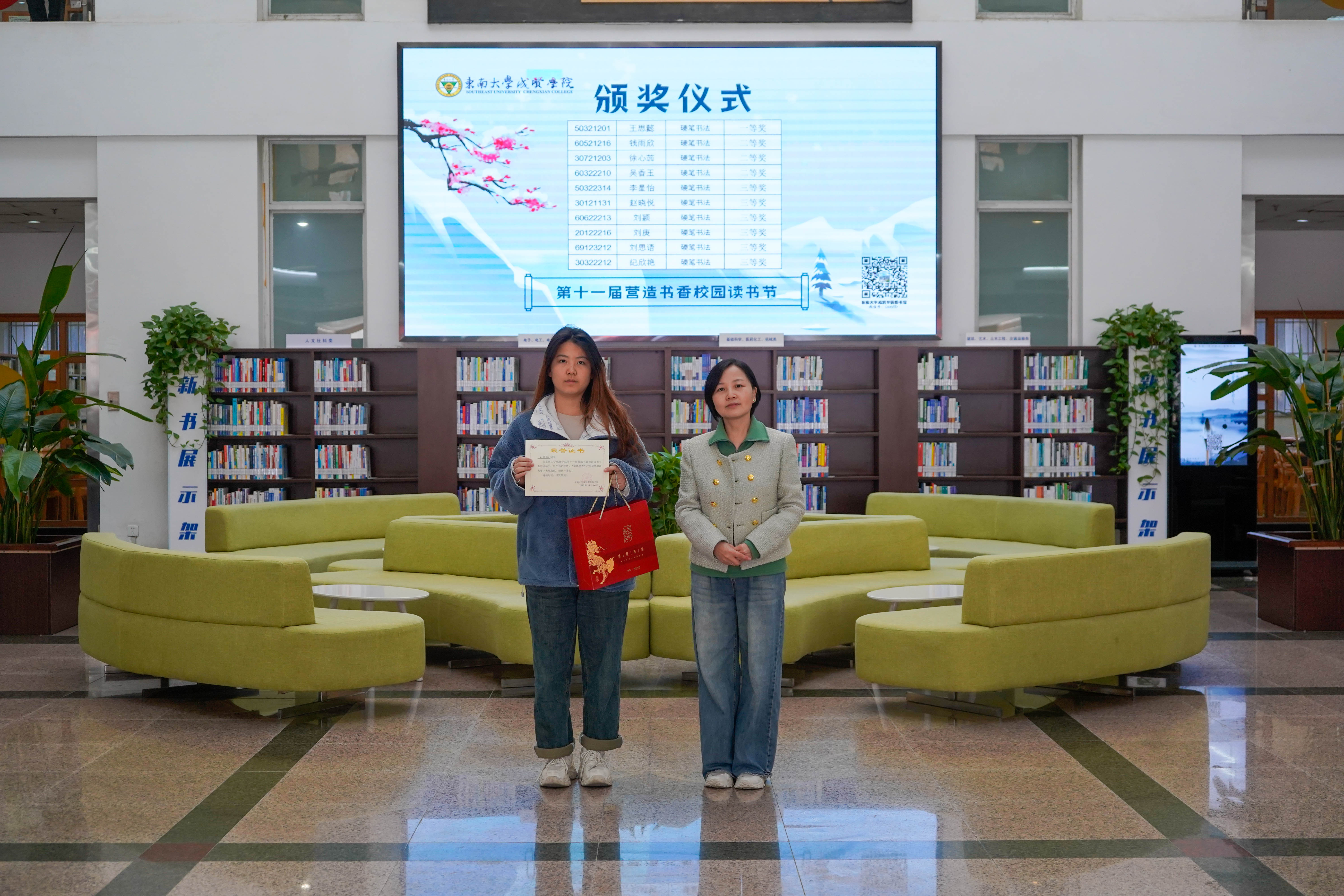 冬日清风拂面,书香满溢校园。12月8日中午,beat365在线唯一官网登录第十一届“营造书香校园”读书节系列活动颁奖仪式在图书馆一楼大厅顺利举行,beat365在线唯一官网登录副院长戴玉蓉、图书馆馆长封晓倩为获奖读者颁奖。