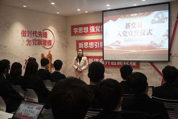 为激励党员践行入党誓词、坚定入党信念、激发爱国情怀,12月14日中午,机械与电气工程学院党总支在beat365在线唯一官网登录“一站式”学生社区红色驿站举行新党员入党宣誓仪式,机电学院党总支书记严红霞、第一党支部书记邓蓉蓉及26名学生党员参加仪式,仪式由邓蓉蓉老师主持。
