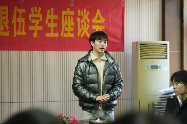 会上,王荣副书记对退役学生展现的优秀品质进行了肯定。他表示退役学生在部队经历了严格的训练和磨练,具有坚定的意志和优良的品质,希望退役学生退伍不褪色,一是能够保持良好作风,无论在学业、工作还是其他方面,都要坚守自己的初心,做一个有信念的人。二是发挥表率作用,展现自己的优秀品质和良好形象,为其他同学树立榜样。