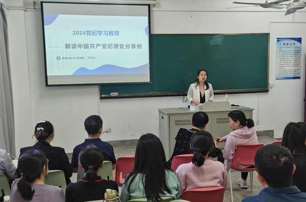 为进一步推动党纪学习教育走深走实,引导党员教师学纪、知纪、明纪、守纪,机械与电气工程学院党总支于5月16日中午在华罗庚馆开展党纪学习教育专题党课。学院全体教职工参加此次会议,党课由学院党总支书记严红霞主讲。