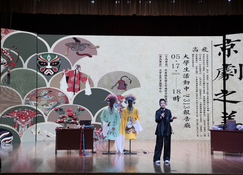 5月17日晚,由校团委主办,大学生艺术指导中心承办的“京剧之美”主题讲座在综合楼报告厅313举办。本次讲座特邀国家一级演员,江苏省政协委员,南京艺术学院硕士生导师高飞教授担任主讲。