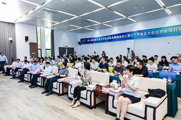 江宁区副区长、江宁区科技镇长团南京未来产业团团长吴凌尧代表江宁区政府向第七届全国大学生创新体验竞赛颁奖典礼的举办表示衷心的祝贺,并指出,南京未来产业团一直坚持求真务实、扎实工作,努力做好科技参谋、桥梁纽带、引才育人、产学研合作等各项工作,希望通过本次竞赛,进一步激发同学们的创新潜能和创业意识,让创新成果源源不断涌现。