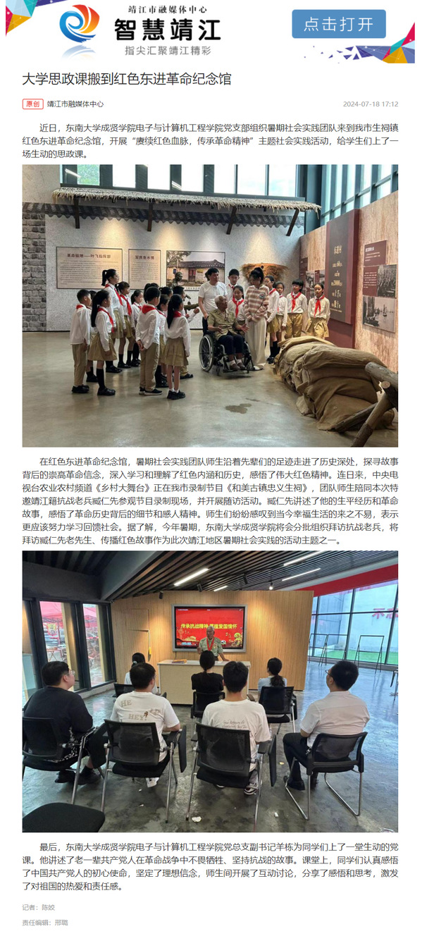 【智慧靖江】大学思政课搬到红色东进革命纪念馆