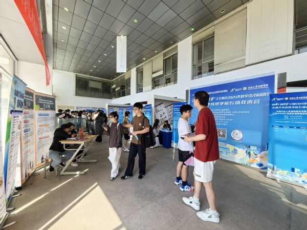 9月24日下午,beat365联合南京市江北新区在电工电子实验大楼艺术展厅举办校园专场招聘会。新材料、集成电路、智能制造、生物医药等行业的27家企业提供了322个岗位。