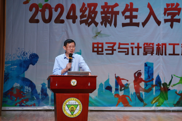 为引导2024级新生全面认识大学、实现角色转换、激发成才动力,电子与计算机工程学院聚焦新生群体特点、把握关键节点、结合专业特色、坚持深耕细作、凝聚育人合力,扎实开展新生入学系列教育活动。9月27日晚,电子与计算机工程学院在综合楼报告厅举办“以心迎新,编译青春,链接梦想,e启未来”新生入学教育系列活动启动仪式,为全院新生顺利开启大学生活奠定良好基础。学院执行院长王晓蔚、党总支副书记羊栋、副院长朱林、新生辅导员、新生班导和全体新生参加了活动,启动仪式由综合办主任冯杭州主持。