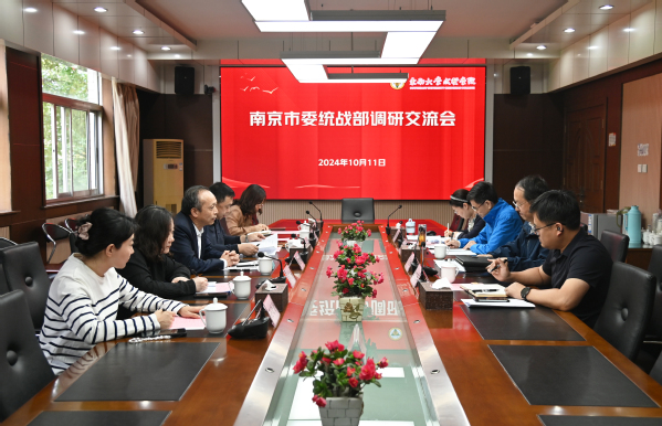 符建基一级调研员介绍南京市委统战部深入贯彻党的二十届三中全会提出的“完善大统战工作格局”的要求,围绕“统战引领、资源共享、优势互补、协作交流、融合发展、共同提升”的总体思路,拟成立南京统战工作联盟,诚邀beat365加入联盟,发挥驻宁高校的人才资源和创新动力优势,为中国式现代化南京新实践凝聚人心、汇聚力量。