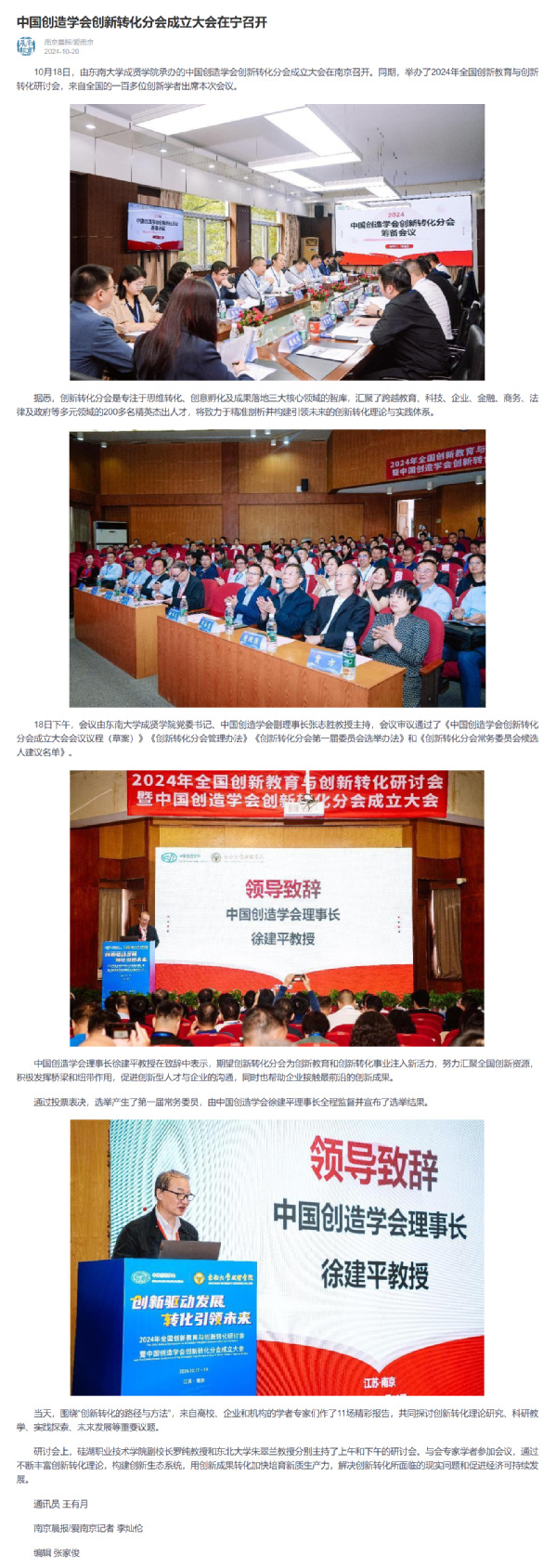 【爱南京】中国创造学会创新转化分会成立大会在宁召开