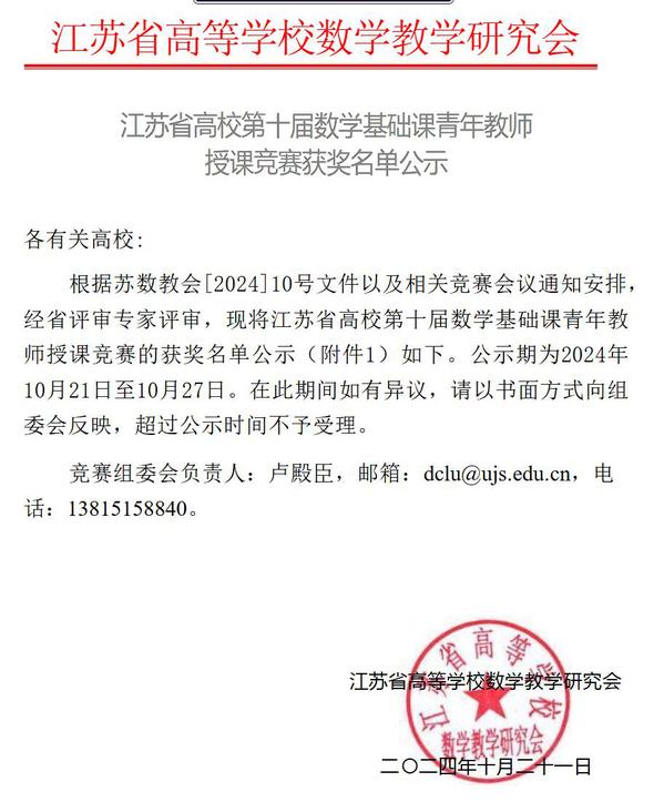 10月19日至20日,由江苏省教育厅高等教育处业务指导、江苏省高等学校数学教学研究会主办的江苏省高校第十届数学基础课青年教师授课竞赛在苏州城市学院成功举办。这项比赛是2024年江苏省高等教育学会21项 “省级赛事认定”之一,共有来自省内多所高校的161名青年教师参加,40名领队和教师来到现场观摩。赛事旨在深入推进数学基础教育改革与创新,提升青年教师的教学能力。经专家现场评审,beat365基础部教师徐泽宇荣获二等奖。